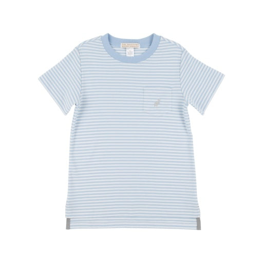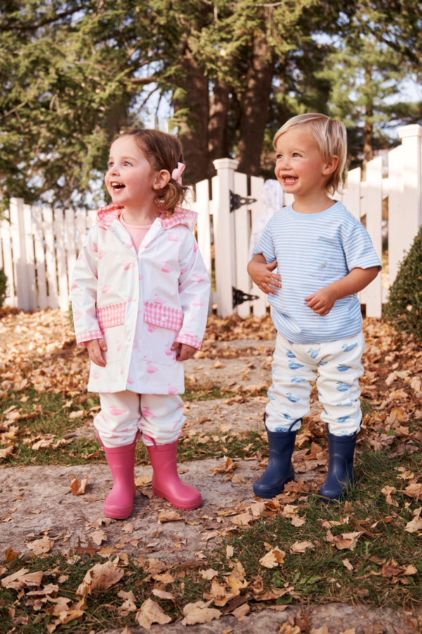 Our Carter Crewneck is on every little boy's wish list! It is comfortable and casual for everyday wear! Our Carter Crewneck in Beale Street Blue Stripe with Grantley Gray Stork is the perfect transition piece.