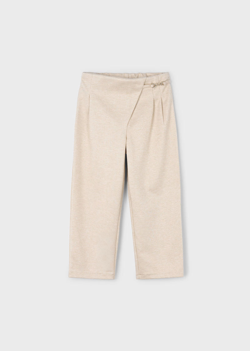 Pants for girls. Elastic waistband. Adjustable elastic waistband with buttons inside the waistband for a better fit. Combination of different fabrics to achieve a unique and special design.