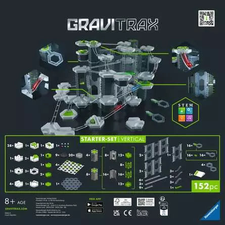 With the GraviTrax PRO Starter Set Vertical, the inventive spirit is unleashed and you can dive straight into the endlessly expandable marble run universe. With over 150 parts and a variety of building blocks, nothing stands in the way of surprising and action-packed building fun. The example tracks and instructions provide a playful introduction to the GraviTrax universe and encourage creativity for building your own tracks.