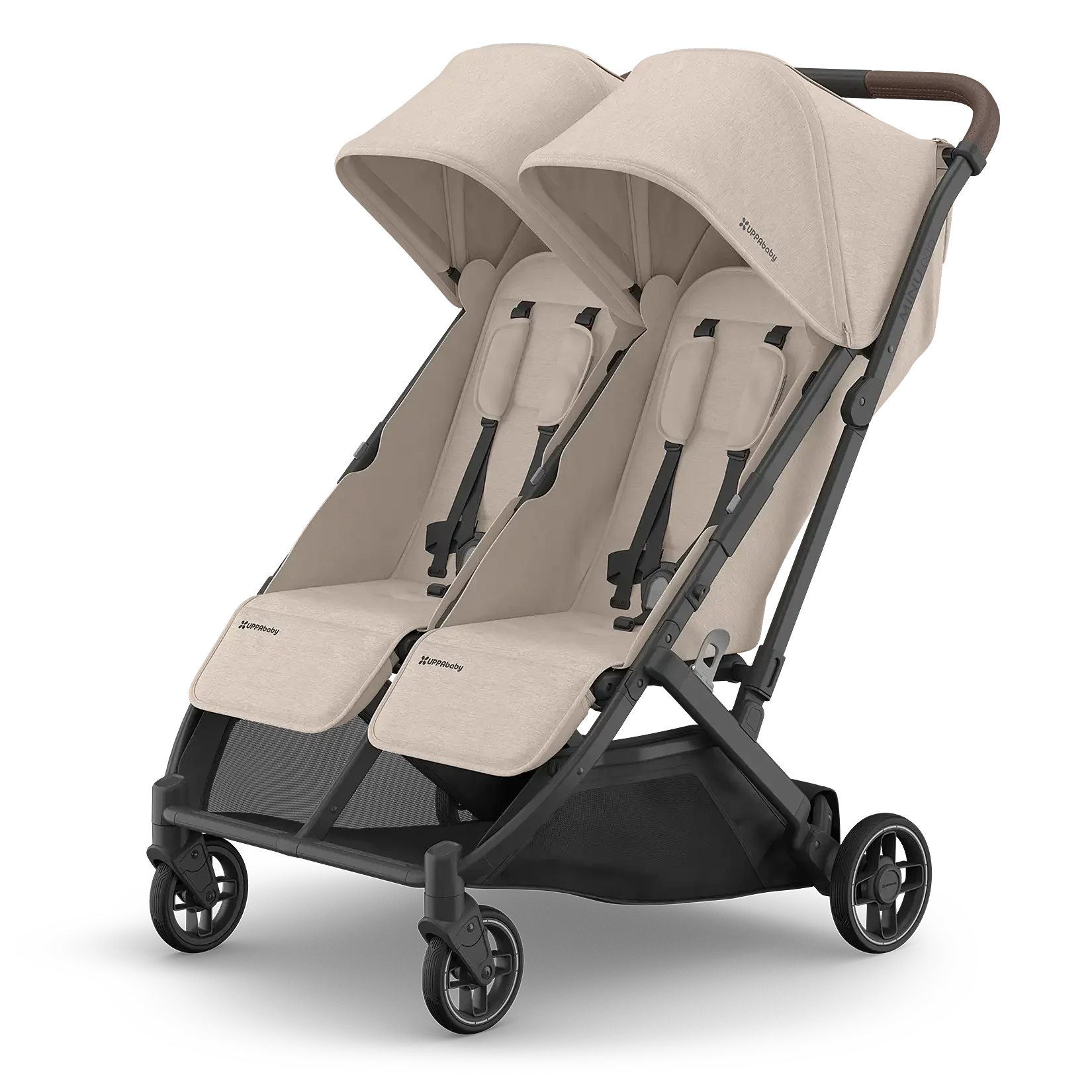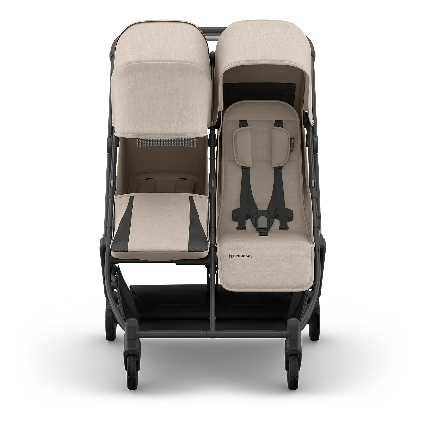 The Minu Duo is a from-birth, side-by-side compact stroller that fits a wide variety of two-child families, from twins to infant and toddler combinations. It’s small enough to fit through a standard doorway and versatile enough to accommodate children up to 50 lbs, so you can travel together as a family with ease.