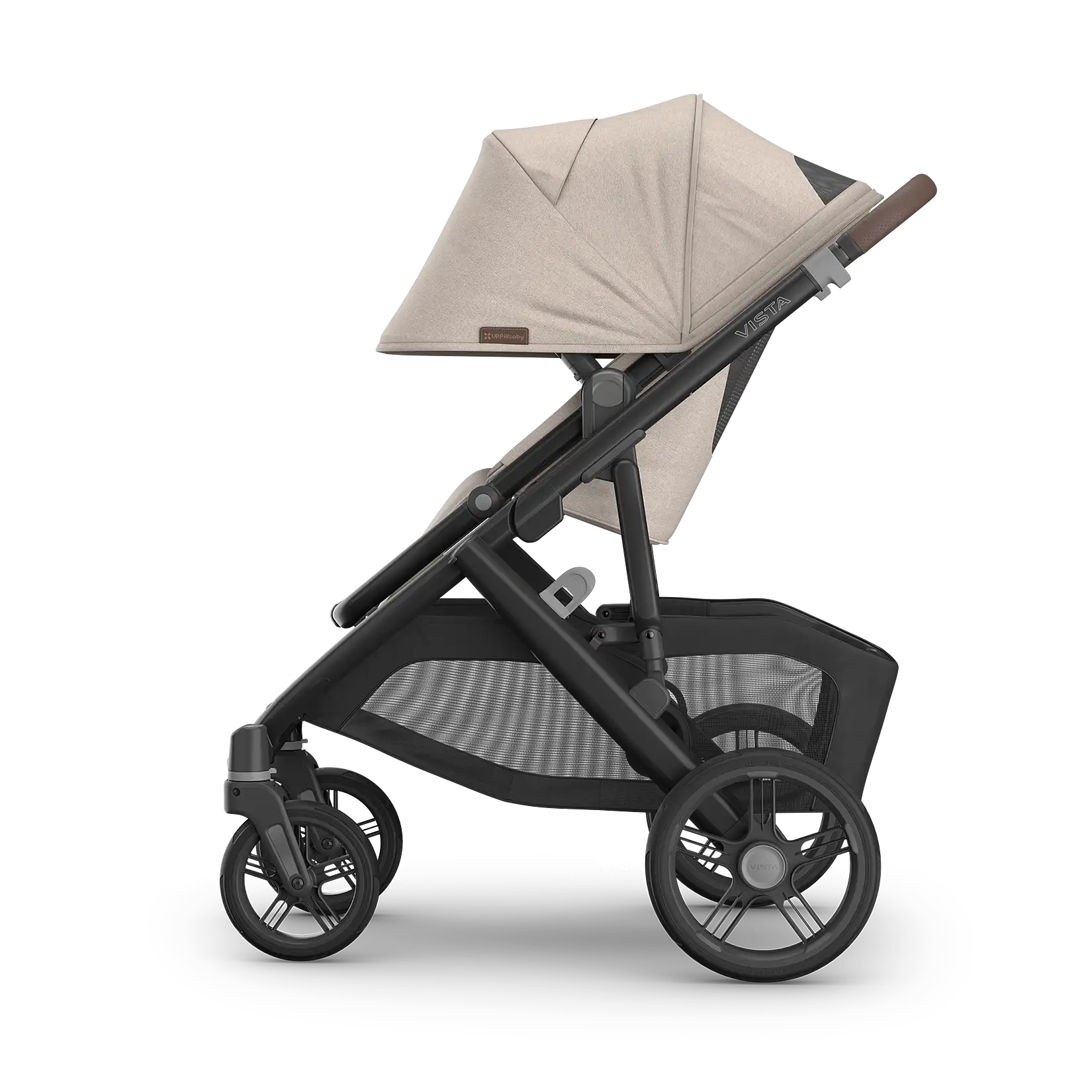 Our Vista stroller is intuitively designed to “grow” with your family! It starts as a single stroller but can easily transform to accommodate up to three children with added accessories and adapters — becoming the ultimate in portability and convenience!