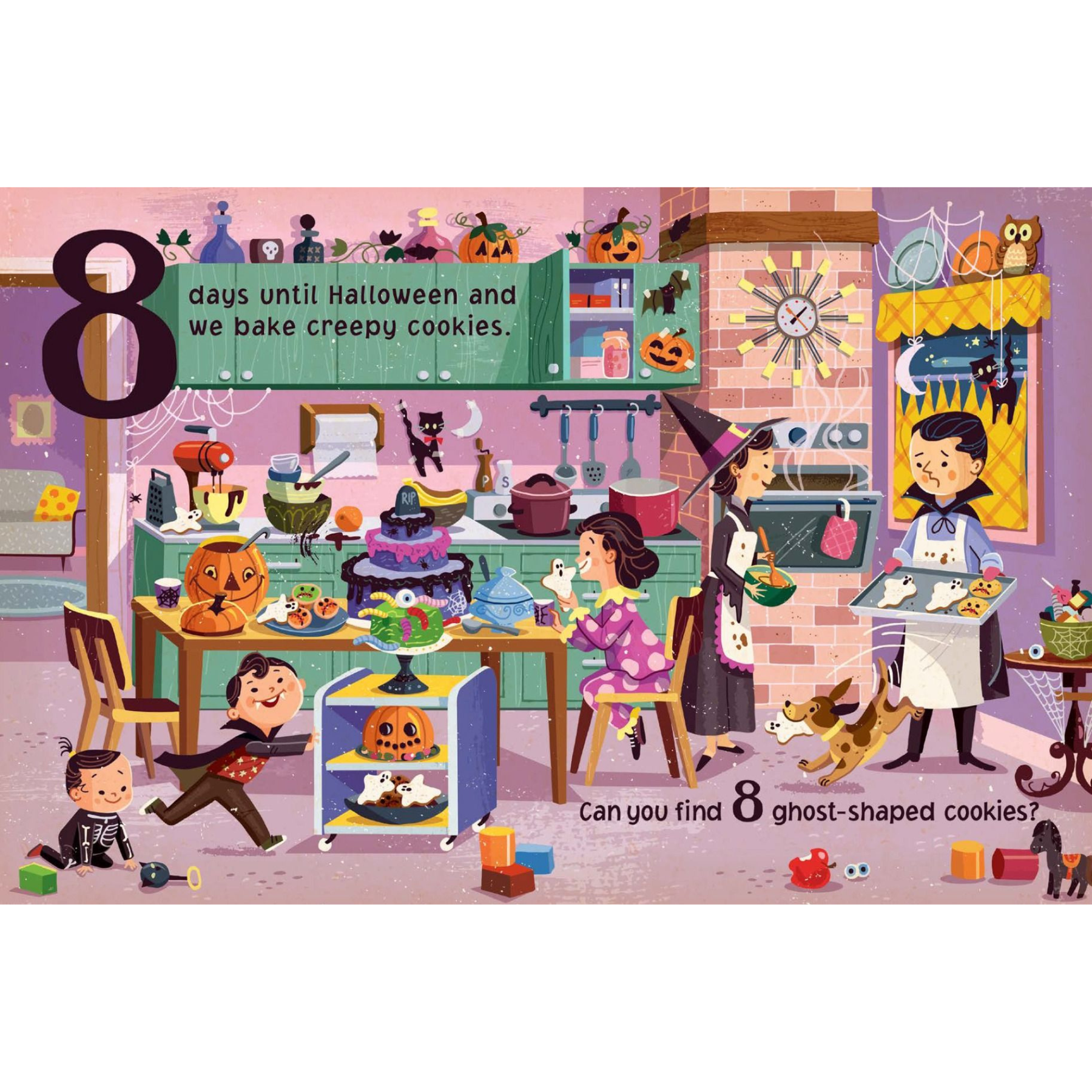 In the Countdown to Halloween Book, toddlers learn to count down from 10 by finding objects hidden throughout the charming scenes of fall fun! From walking through corn mazes and bobbing for apples to choosing costumes and telling spooky stories around a fire, there's excitement on every page. The final spread is packed with surprises! Discover new details in each illustration with every successive reading.