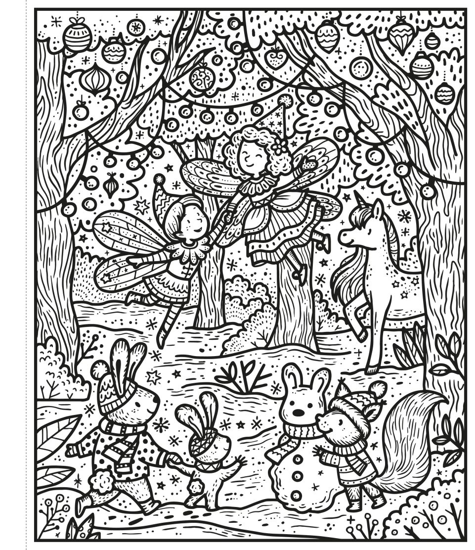 Filled with wintry whimsy, from ice-skating unicorns to snow castles, northern lights and other fantastical delights. Use the brush provided to sweep water over the designs and festive colors magically appear! A mess-free way to keep children busy in the holidays. Simply tuck the waterproof back flap under each page as it's painted, to stop water from seeping through to the rest of the book.